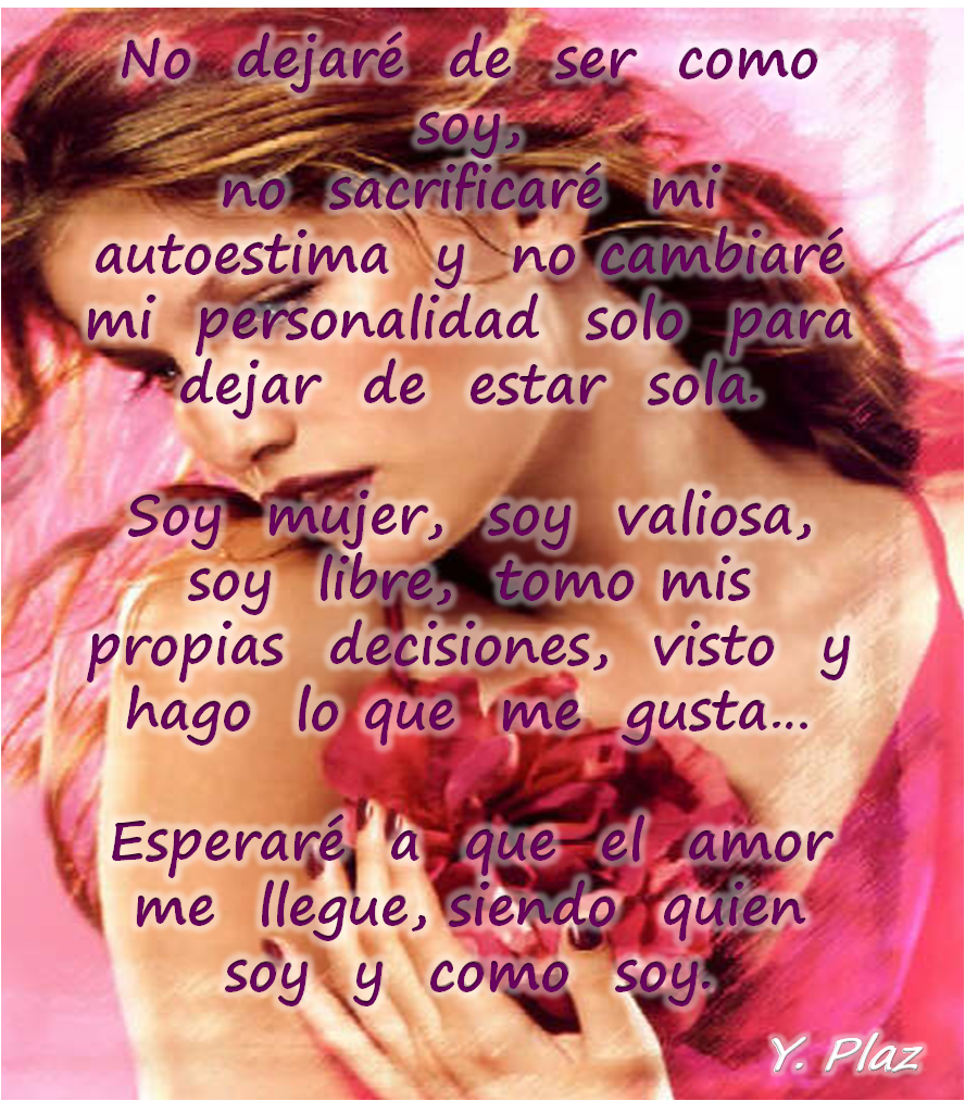 "No dejaré de ser como soy, no sacrificaré mi autoestima y no cambiaré mi personalidad, solo para dejar de estar sola. Soy mujer, soy valiosa, soy libre, tomo mis propias decisiones, visto y hago lo que me gusta .
