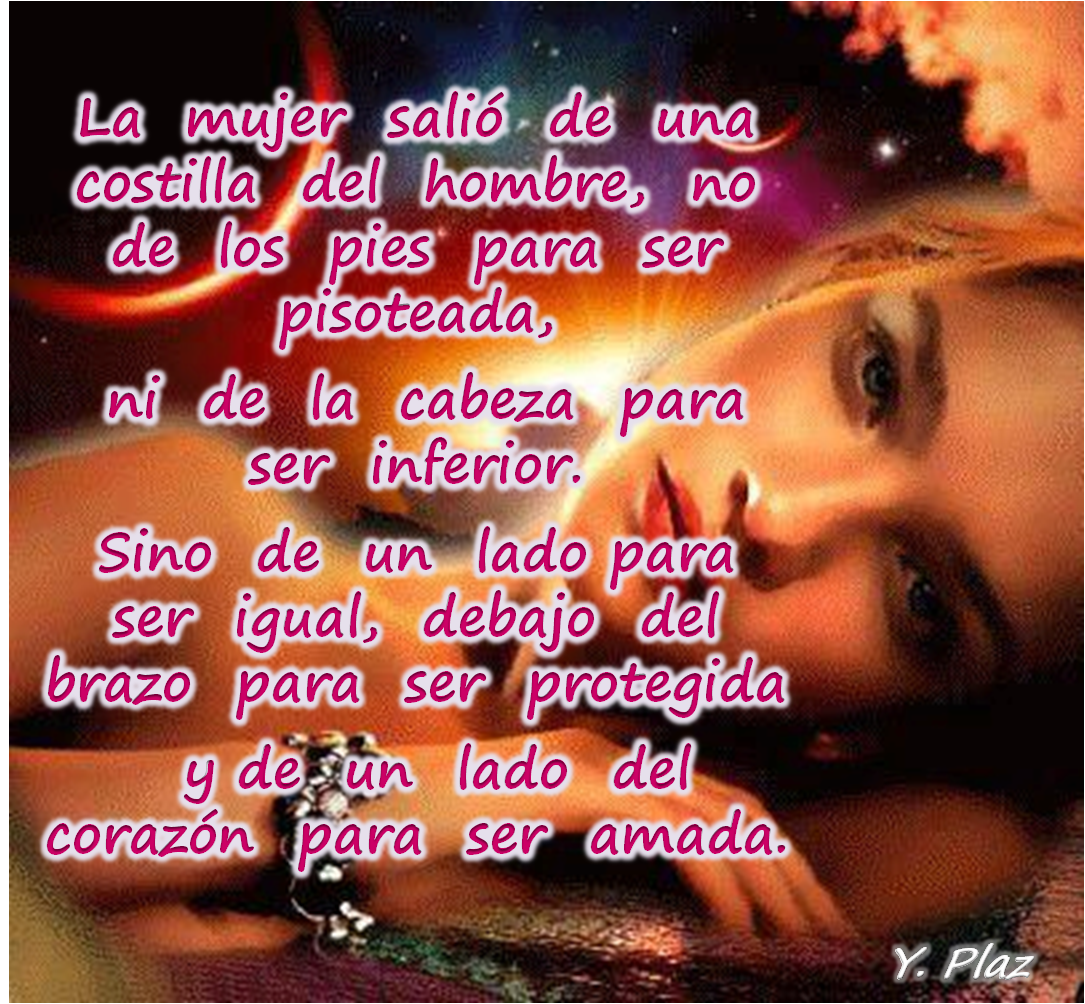"La mujer salió de una costilla del hombre, no de los pies para ser pisoteada, ni de la cabeza para ser inferior, sino de un lado para ser igual, debajo del brazo para ser protegida y de un lado del corazón para ser amada".