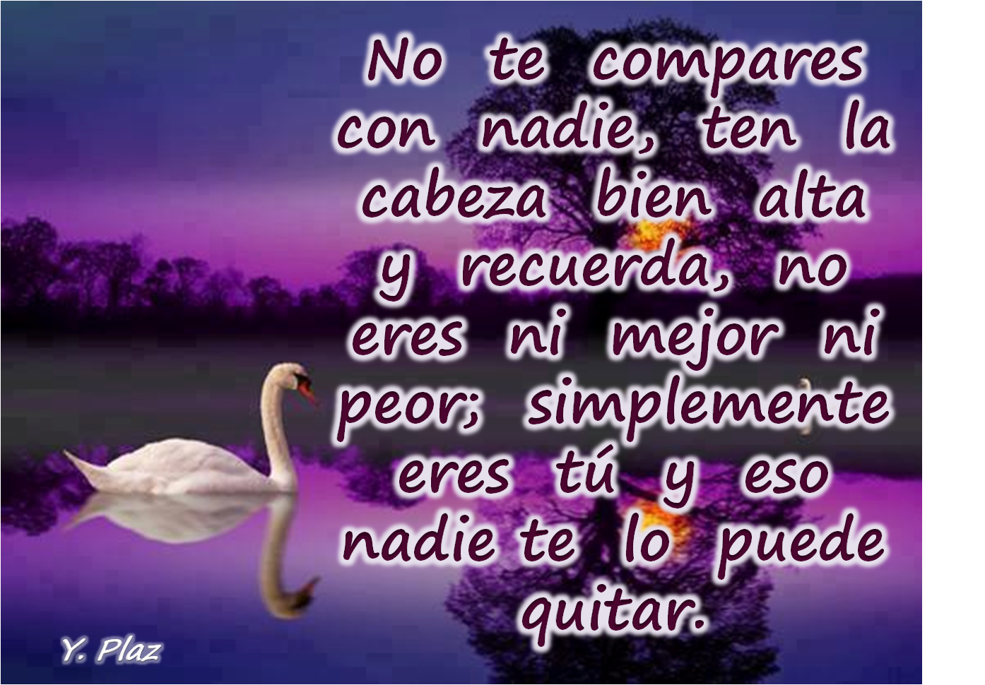 "No te compares con nadie, ten la cabeza bien alta y recuerda, no eres ni mejor ni peor, simplemente eres tú y eso nadie te lo puede quitar".