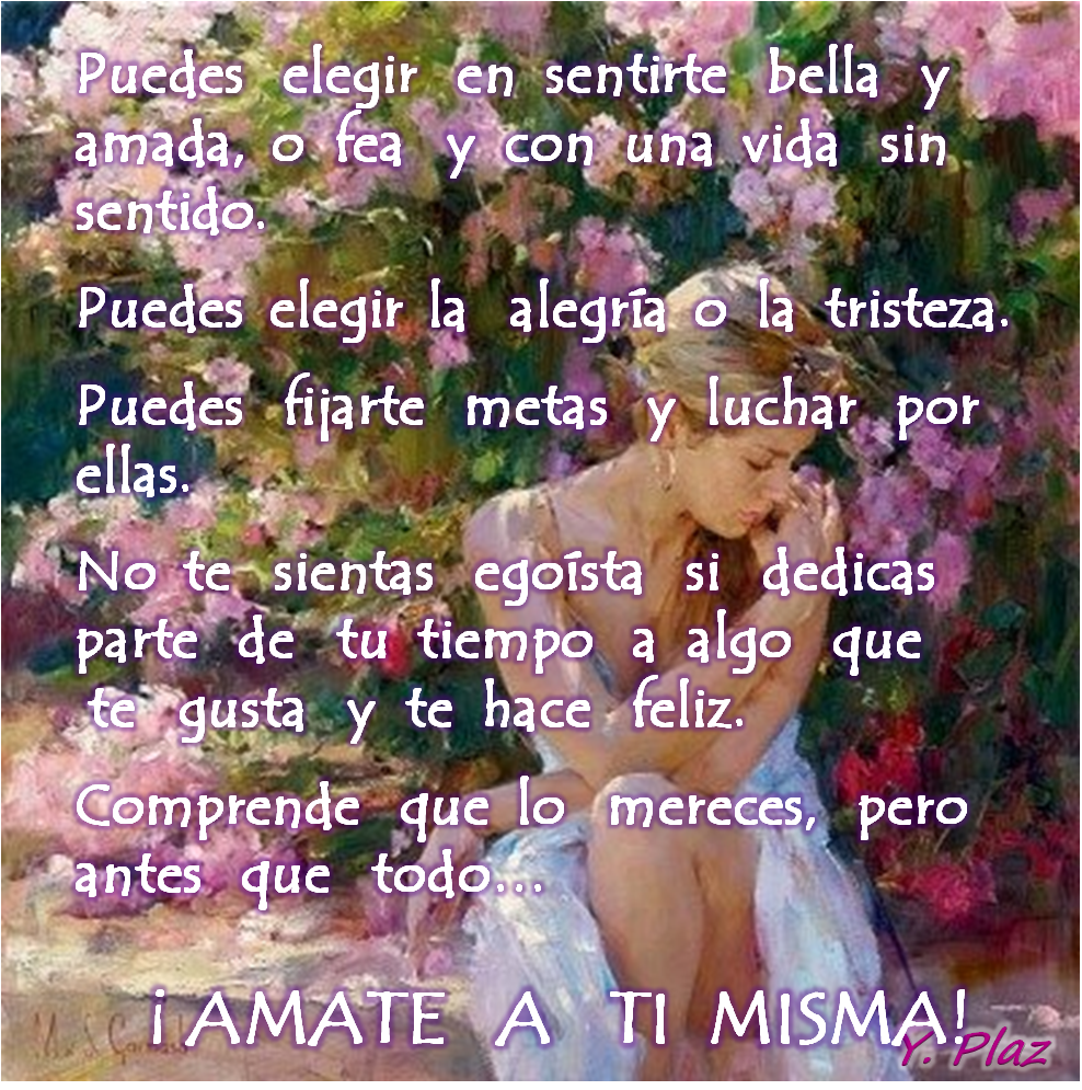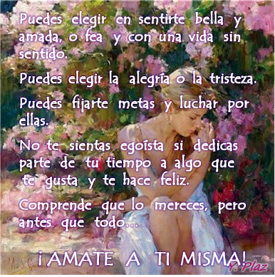 " Puedes elegir, en sentirte bella y amada, o fea y con una vida sin sentido Puedes elegir, la alegría o la tristeza
